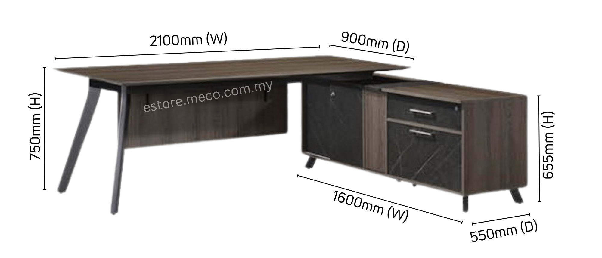 * SIDE CABINET : 1600W x 550D x 655H mm